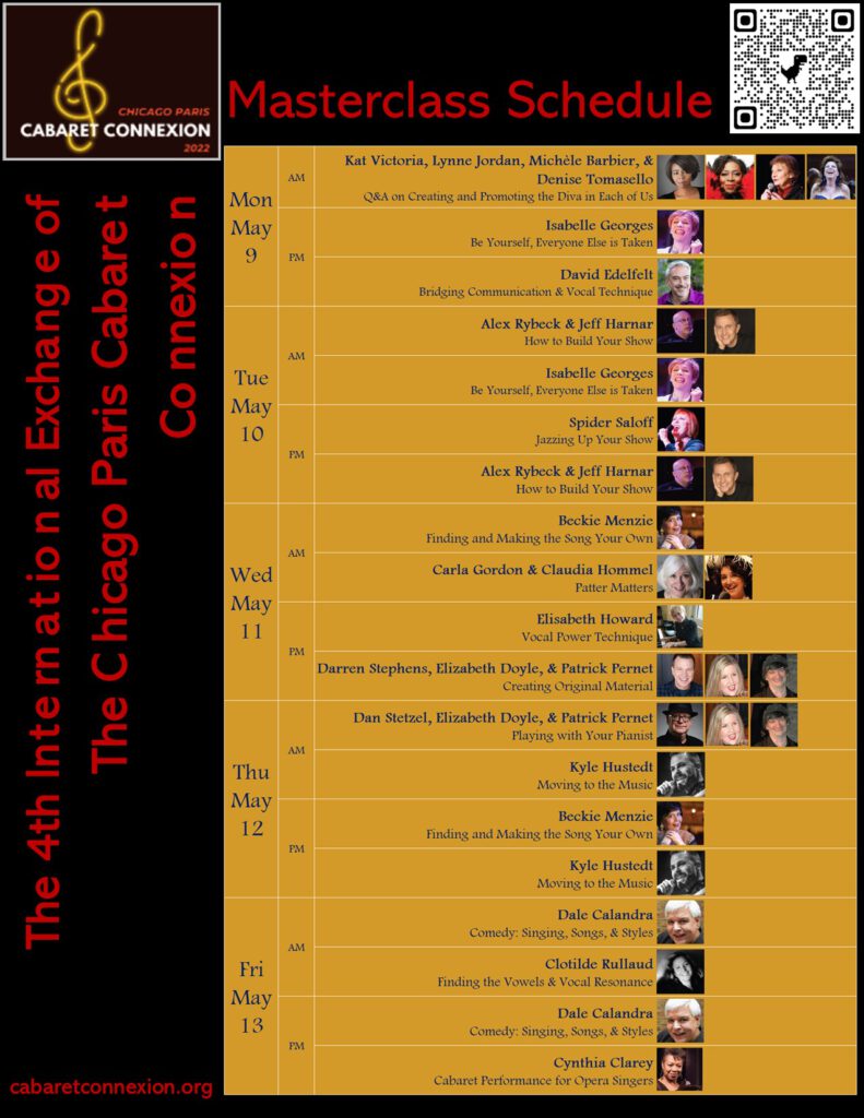Alors qu’au cabaret, les règles sont faites pour être enfreintes, dans cette session, l’interprète/directeur JEFF HARNAR et le directeur musical ALEX RYBECK offrent des suggestions et des lignes directrices sur la façon de structurer un spectacle de cabaret. Les sujets à couvrir incluent l’arc dramatique du spectacle, le rythme, la construction et l’utilisation du motif : comment réaliser au mieux votre vision musicalement, structurellement et thématiquement, le tout d’une manière profondément et définitivement personnelle… et, nous l’espérons, divertissant. Apportez un carnet de 20 à 30 chansons envisagées pour votre prochain spectacle.